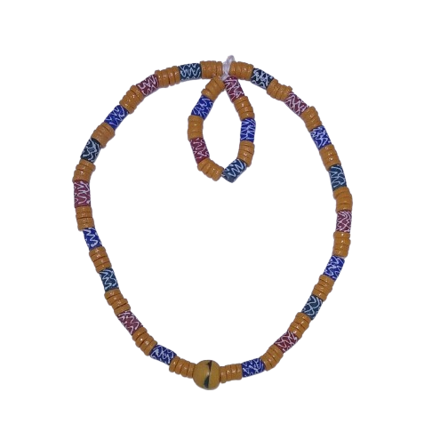 Elevate your look with timeless elegance and cultural pride through this Handmade Royal Beaded Set, featuring a beautifully coordinated necklace and bracelet. Crafted with traditional African artistry, this set showcases golden yellow beads paired with intricately patterned red, blue, and black beads that reflect African heritage and royalty.