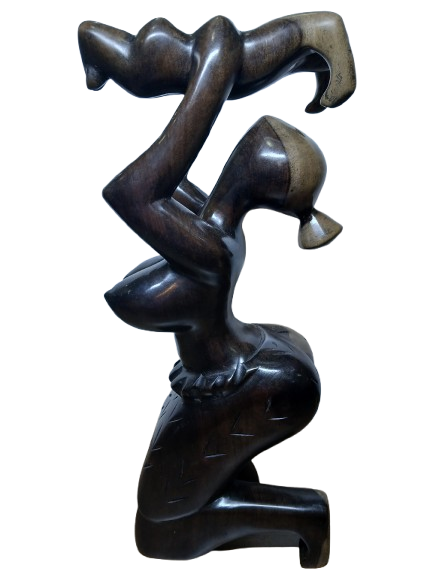 Celebrate the beauty of motherhood with this exquisitely handcrafted African wooden sculpture, “Sweet Mother.” This stunning piece features a mother kneeling gracefully while lifting her child high in the air, symbolizing love, care, and deep maternal affection.